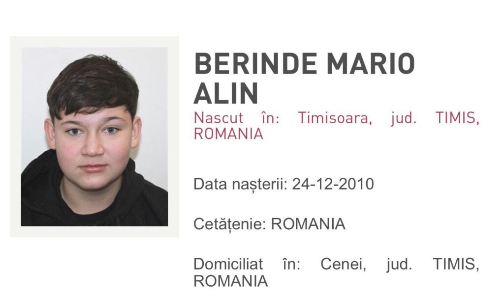 Alin Mario Berinde a plecat de acasă pe 20 ianuarie, cu trotineta, și nu s-a mai întors. Familia a alertat imediat poliția, iar adolescentul a fost dat dispărut. Căutările au scos rapid la iveală indicii tulburătoare: urme de sânge pe o stradă din localitate, iar ulterior, gheata și trotineta băiatului au fost găsite abandonate într-un stufăriș.